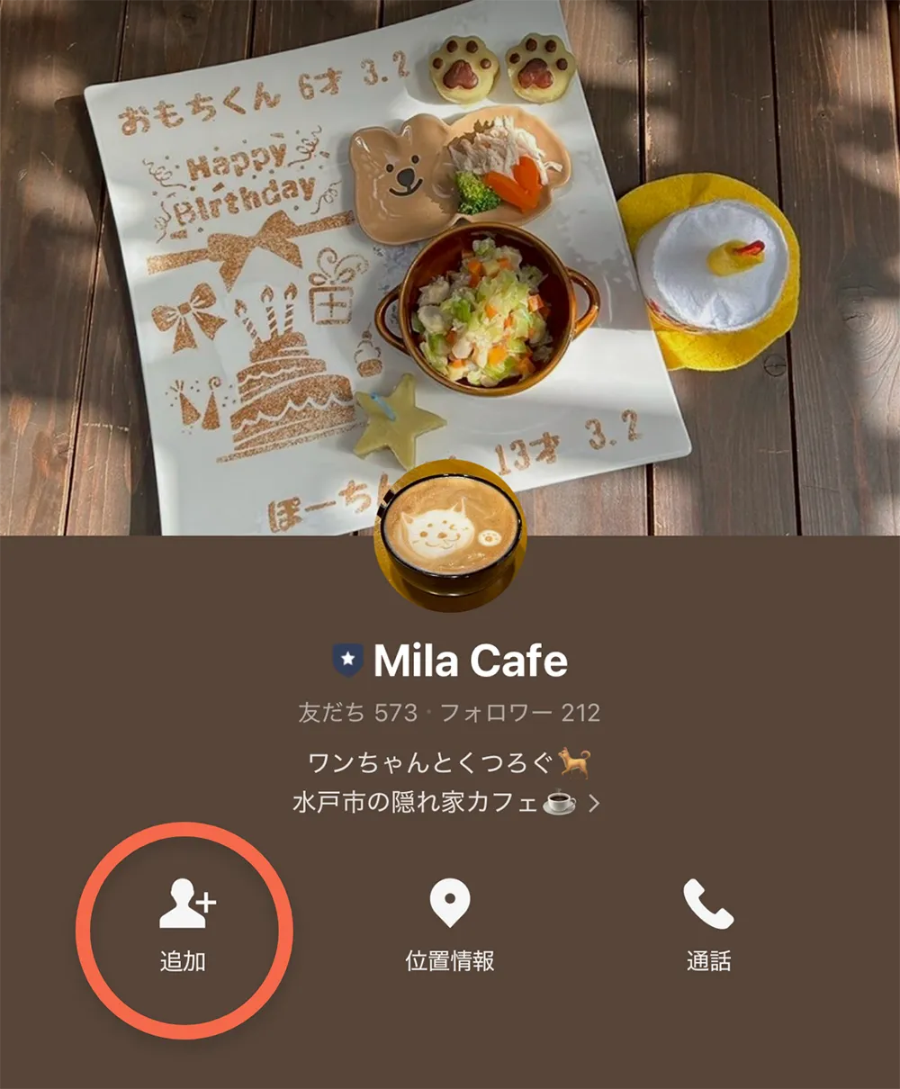 上記画像を参考に、必ず「追加」ボタンをタップして友だち追加をしてください。